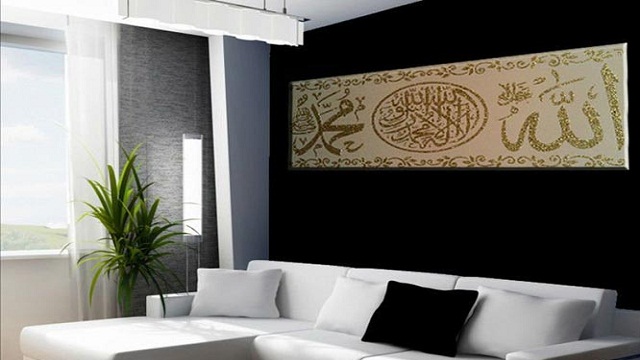 Selain hiasan dinding di atas, anda juga bisa memajang kaligrafi arab sebagai hiasan dinding hunian anda. Dengan desain yang simpel, kaligrafi tersebut mampu menarik perhatian para keluarga yang berkunjung kerumah. Menarik bukan?