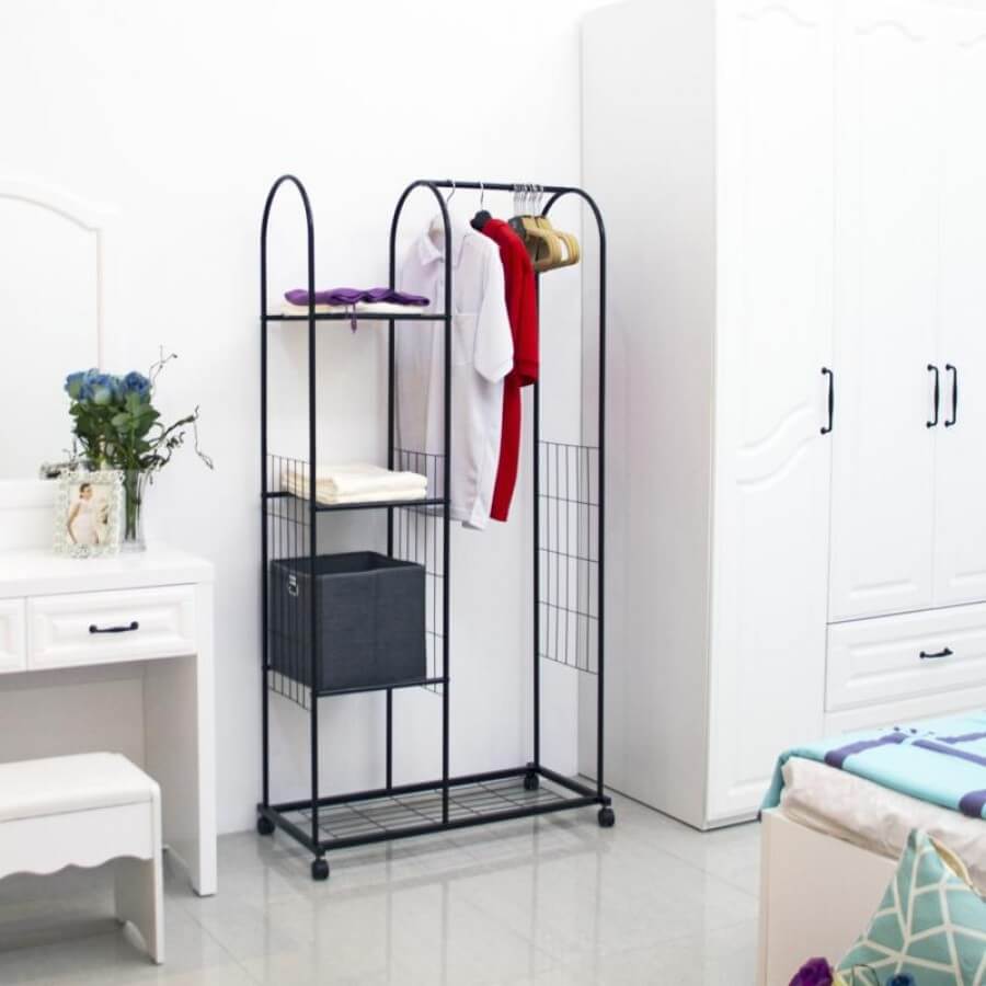 Anda juga dapat menggunakan rak pakaian. Bentuknya yang ramping dan minimalis, akan membuat ruangan lebih luas atau lega serta rapi. Terutama dalam bagian kamar penggunaan rak baju sangat diutamakan. Anda dapat menggantung baju jika tidak ingin menyetrikanya. Sehingga baju tidak terlihat kucel dan tetap sedikit rapi. Namun akan lebih rapi lagi jika Anda menyetrikanya ya.